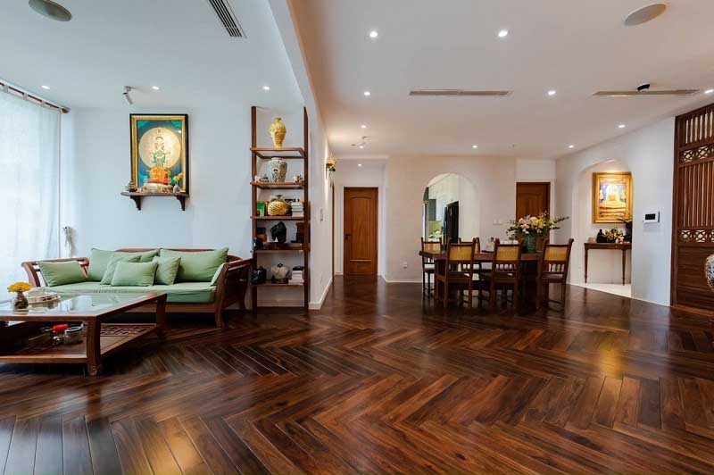 Đặc biệt, sàn gỗ Chiu Liu xương cá rất phù hợp với đồ nội thất gỗ tự nhiên, da, đá marble và các gam màu trầm.